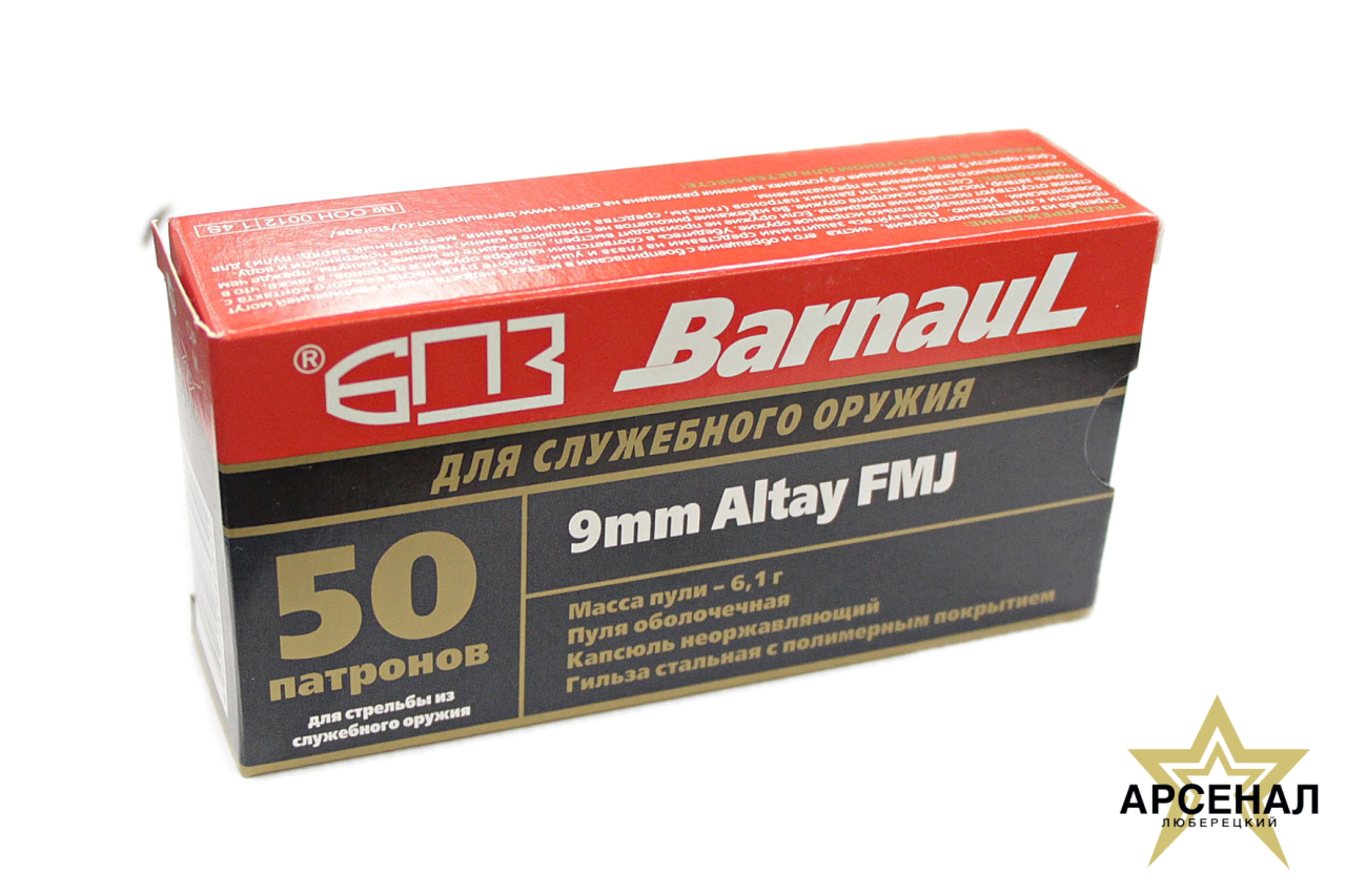 Патрон 9mm Altay служеб. (FMJ 6,1г полимер (Барнаул))