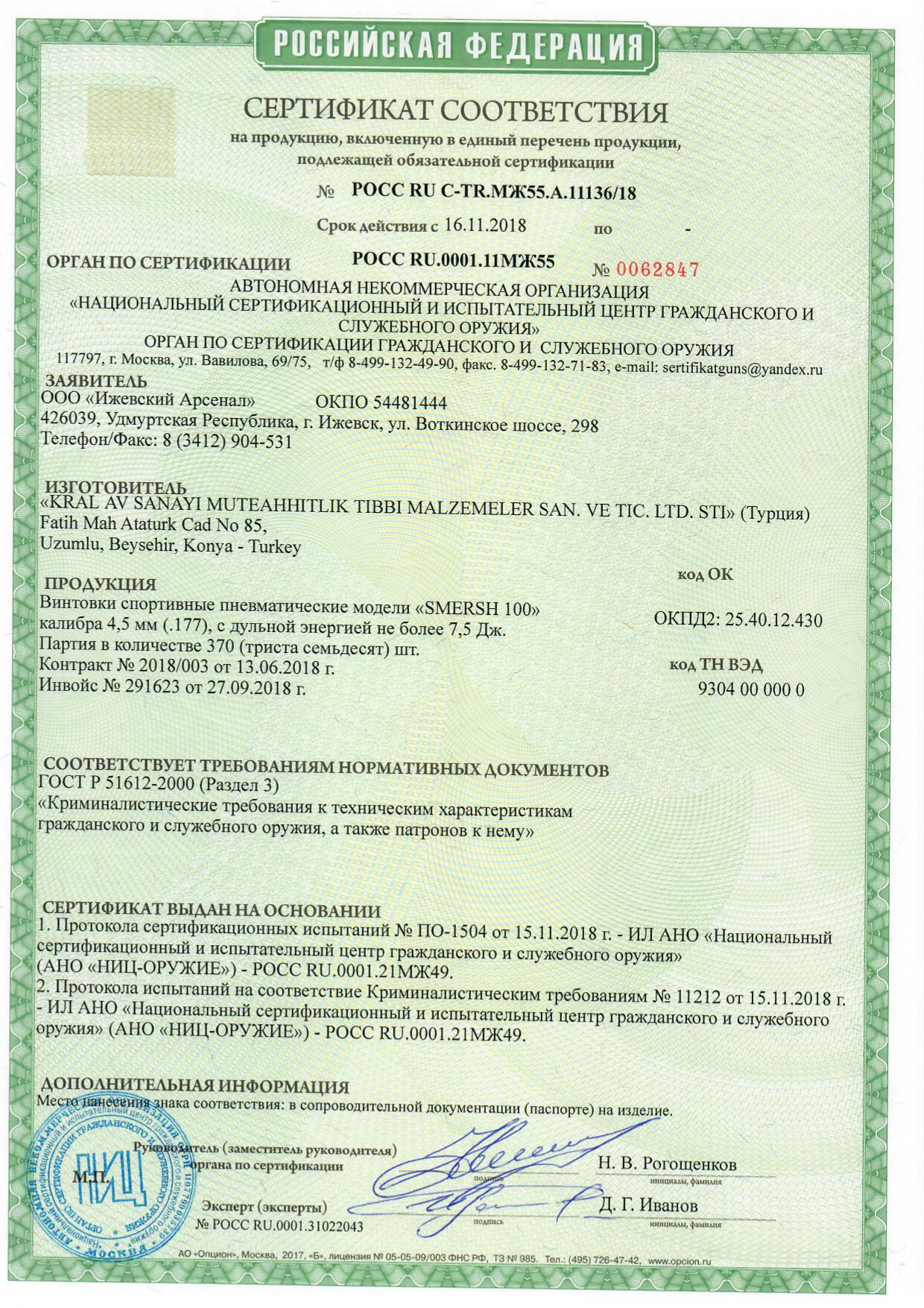 • Длина ствола: 455 мм — способствует высокой точности и хорошей баллистике.