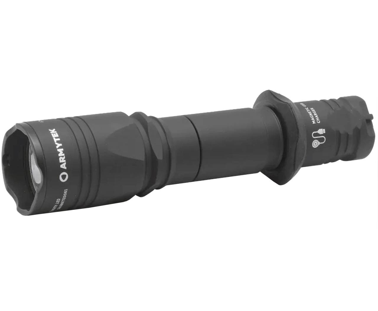 Тактический фонарь 2 в 1 с магнитной USB-зарядкой. Модель с узким углом света и плавным переходом между центральным пятном и боковой засветкой оптимальна как для решения специальных задач и охоты, так и для повседневного применения.