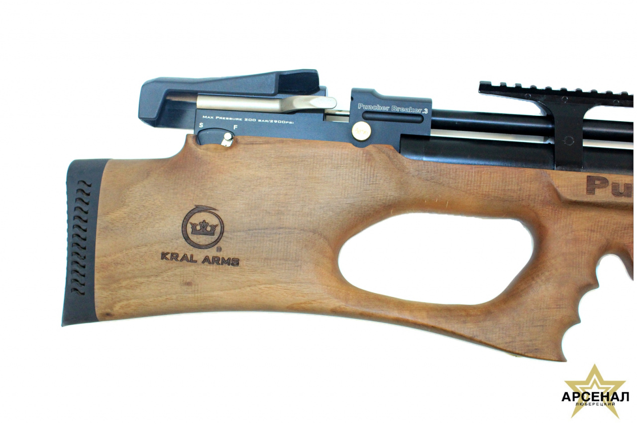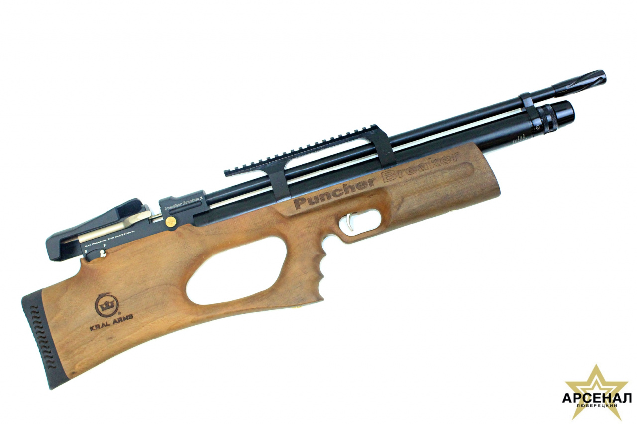 Пневматическая винтовка Puncher Breaker.3 калибра 5,5 мм с ореховым ложем — это оружие от турецкого производителя Kral ARMS. Этот инструмент сочетает в себе мощность и стиль благодаря ряду продуманных характеристик. В качестве источника энергии используется резервуар высокого давления, который обеспечивает скорость выстрела до 380 м/с и дульную энергию до 3 Дж.
