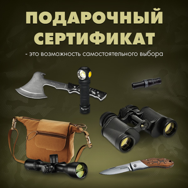 Ищете идеальный подарок для любителя оружия или охоты? У нас есть отличное решение! В нашем салоне вы можете оформить подарочный сертификат, как онлайн, так и непосредственно в нашем салоне.