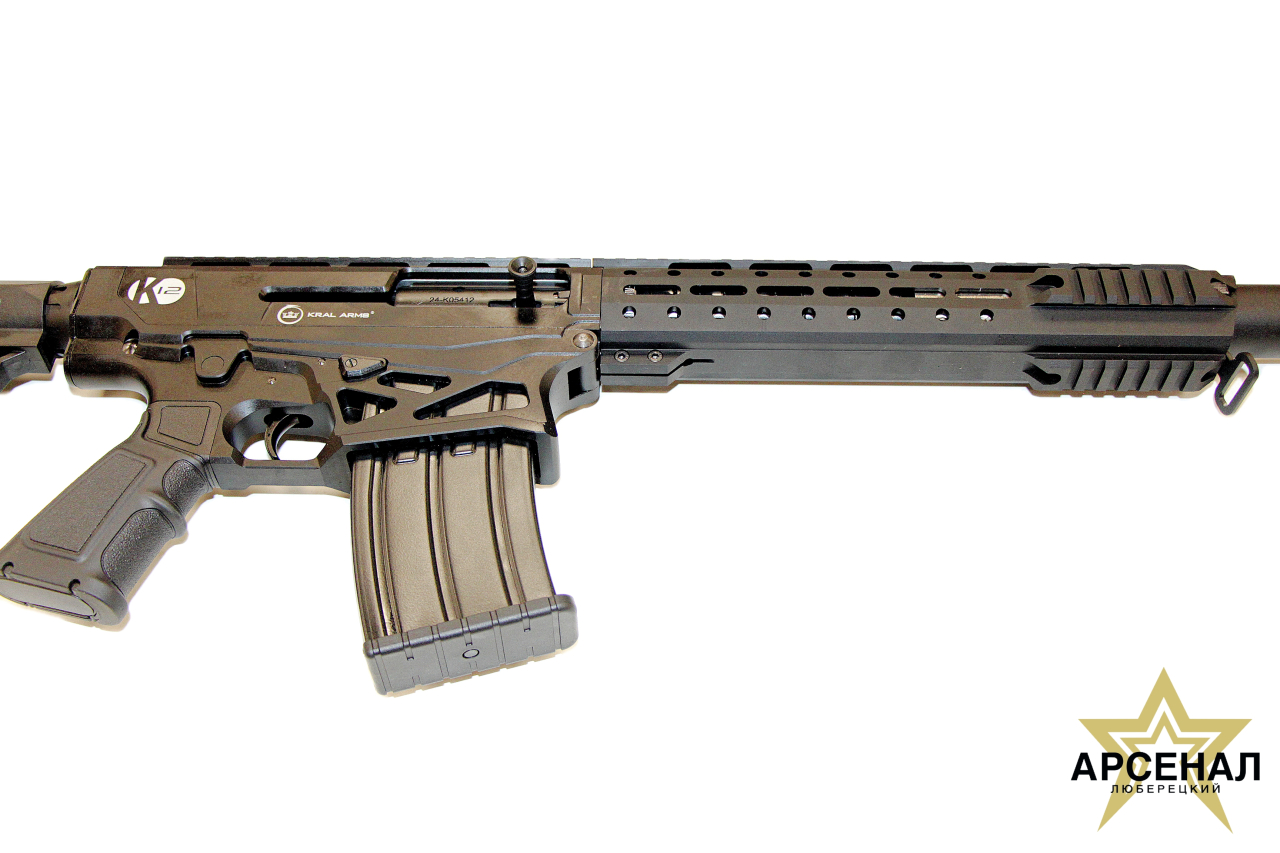 KRAL K12 — полуавтоматическое ружьё, произведённое турецкой компанией Kral Arms. Это надёжное и современное оружие сочетает в себе высокую функциональность и эргономичный дизайн. KRAL K12 выполнен в калибре 12/76 и оснащён стволом длиной 610 мм. Общая длина ружья составляет 970 мм, а ёмкость магазина — 5 патронов. Ложа и телескопический приклад изготовлены из прочного пластика, что снижает общий вес до 3,8 кг.
