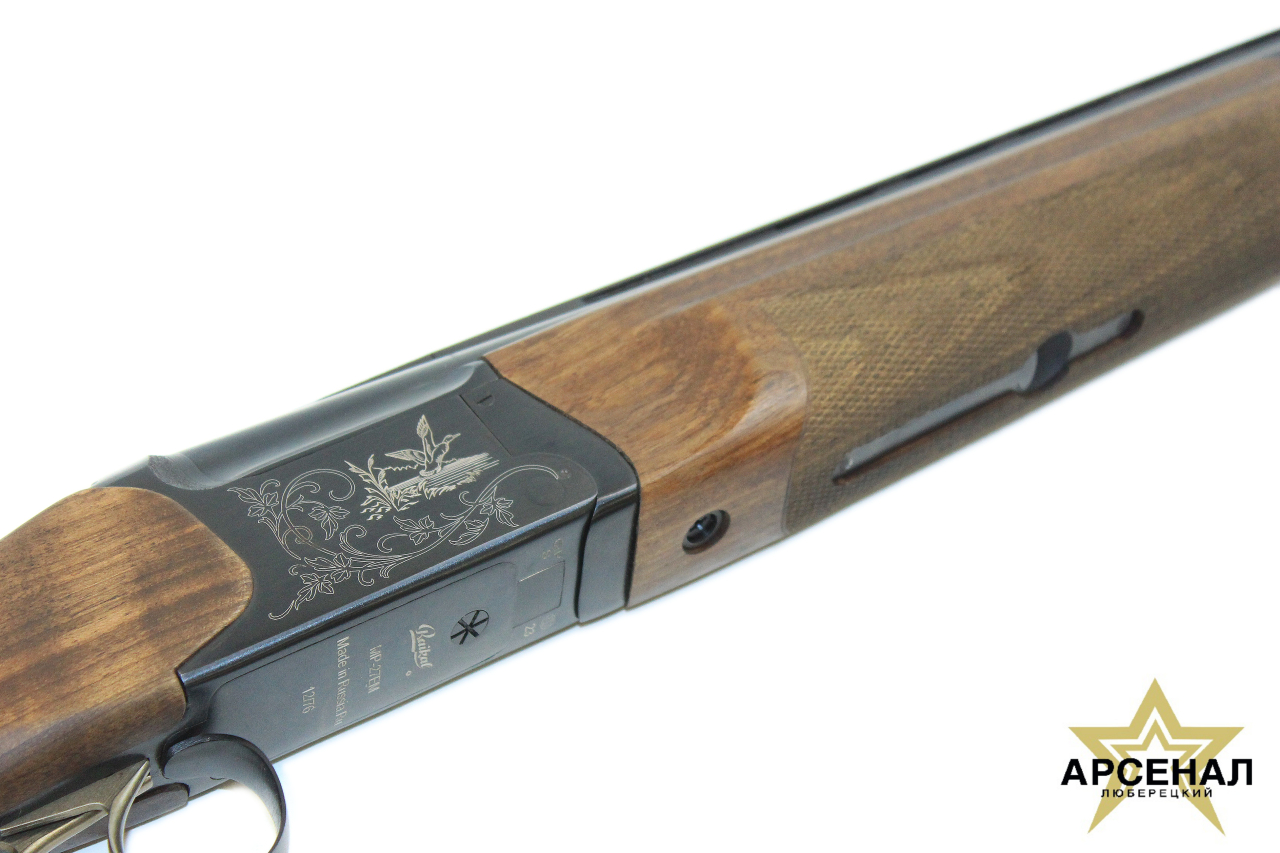 Особое внимание уделено удобству и безопасности эксплуатации: ружье оборудовано двумя позолоченными спусковыми крючками, эжекторами селекторного типа, безударным спуском и автоматическим предохранителем. Приклад с пластиковым затыльником, а также пистолетная рукоять и цевье изготовлены из массива ореха с насечками, что обеспечивает надежный хват и комфортную стрельбу. Вес ружья составляет 3,6 кг, что делает его удобным для длительных охотничьих выходов.