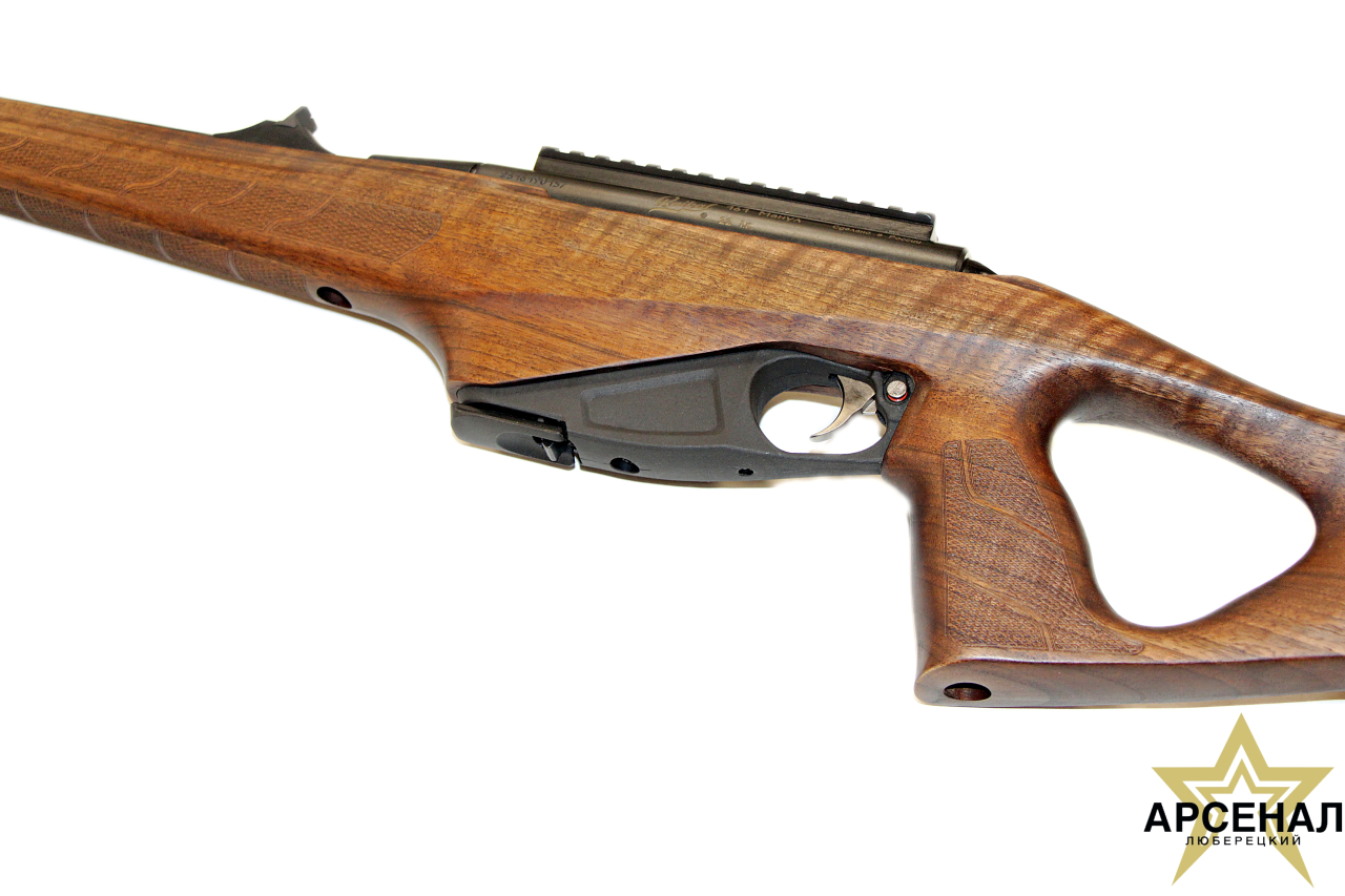 - Ложа изготовлена из древесины ореха и оснащена эргономичной рукояткой типа Thumbhole;