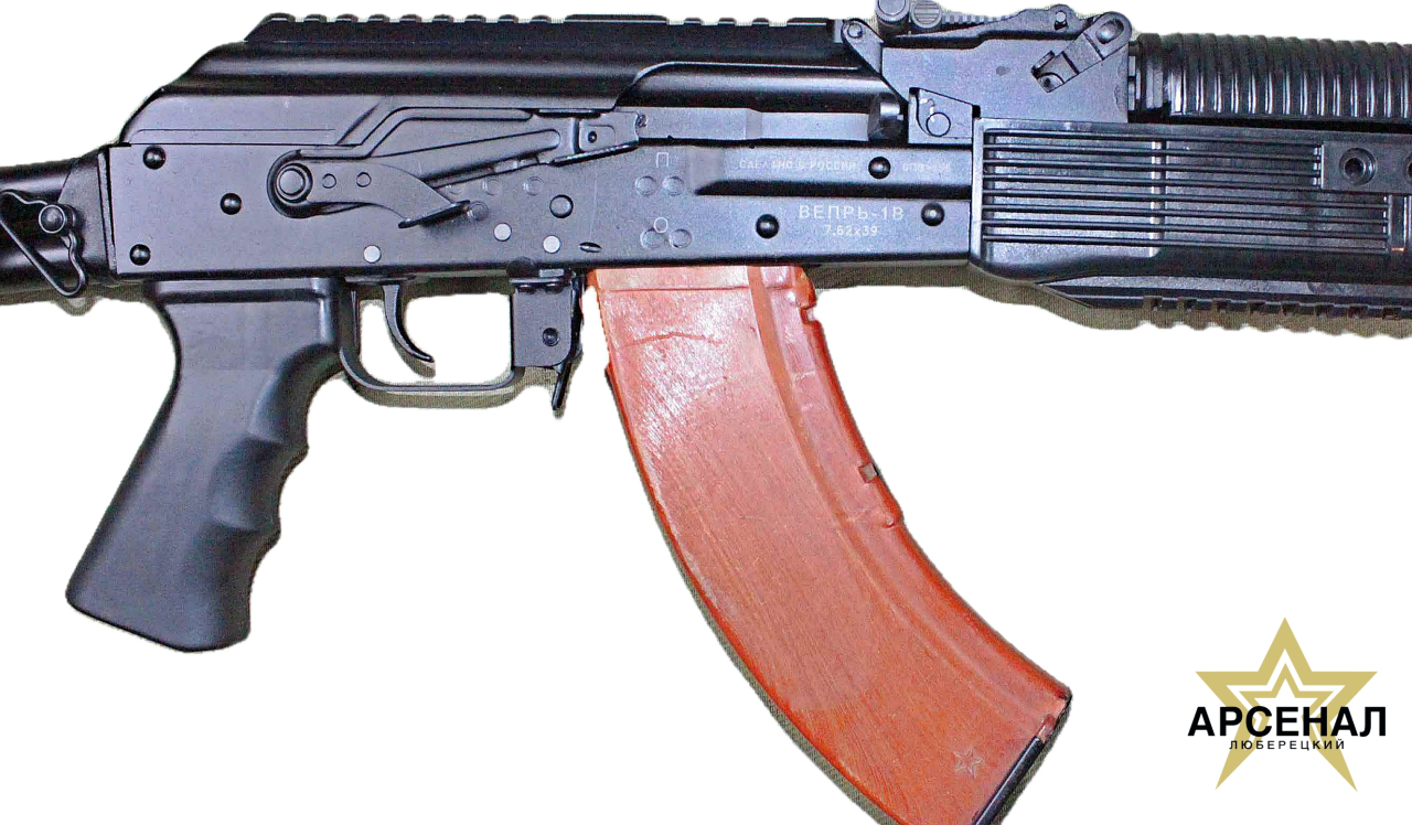 Нарезной самозарядный крабин Вепрь-1В (ВПО-156-22) калибр 7,62х39 сделан на базе ручного пулемёта Калашникова на оружейном заводе "Молот Оружие" (Вятские Поляны). Модель предназначена для проведения спортивно-тренировочной стрельбы и охоты на различного зверя. На карабине установлен складной приклад с регулируемой щекой.