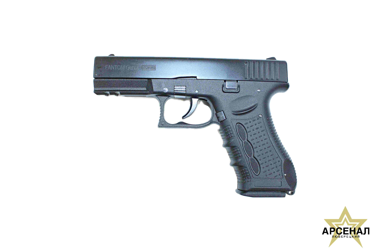 Травматический пистолет Fantom калибр 9 мм Р.А., исполнение " Gen.2", произведен на заводе КУРС-С г. Сарапул. ОООП Фантом стилизован под легендарный пистолет GLOCK 17. Пистолет имеет отличную эргономику, на рамке присутствует планка Weaver для установки подствольного фонаря, либо лазернорго целеуказателя. Канал ствола имеет минимум "перегородок" , за счет этого достигается высокая кучность и мощность.